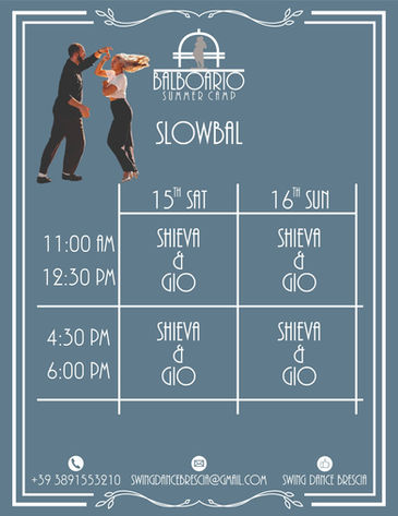 Avrete la possibilità di seguire le lezioni di Balboa e Balswing del livello e del periodo al quale vi iscriverete con tutte le coppie di maestri proposti. Per lo Slowbal ci sarà una coppia di insegnati dedicata che proporrà un percorso di livello “open”.